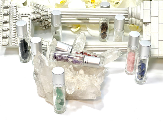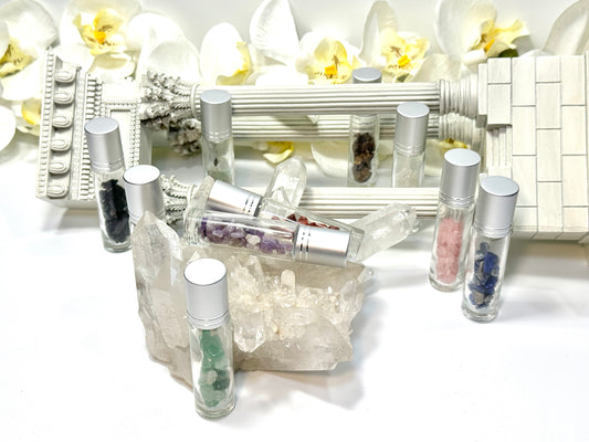 Collection: ESSENTIAL OIL ROLLER BOTTLES W/ CRYSTALS
