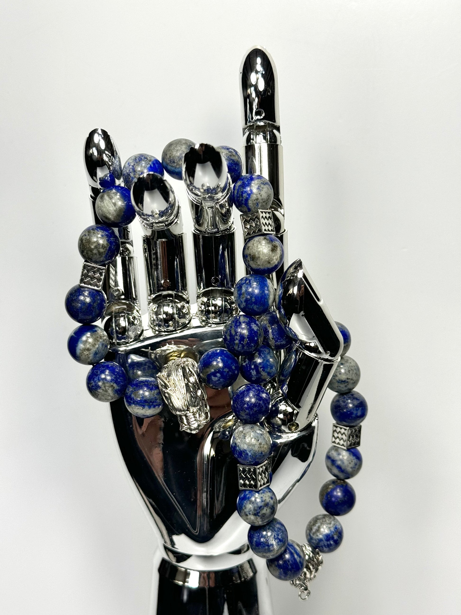 "Embrace the mystique of Lapis Lazuli with dragon natural gemstone bracelet, captivating pieces feature deep blue Lapis Lazuli, adorned with a powerful dragon motif symbolizing wisdom and strength. Perfect for adding a touch of elegance and intrigue to any style."
