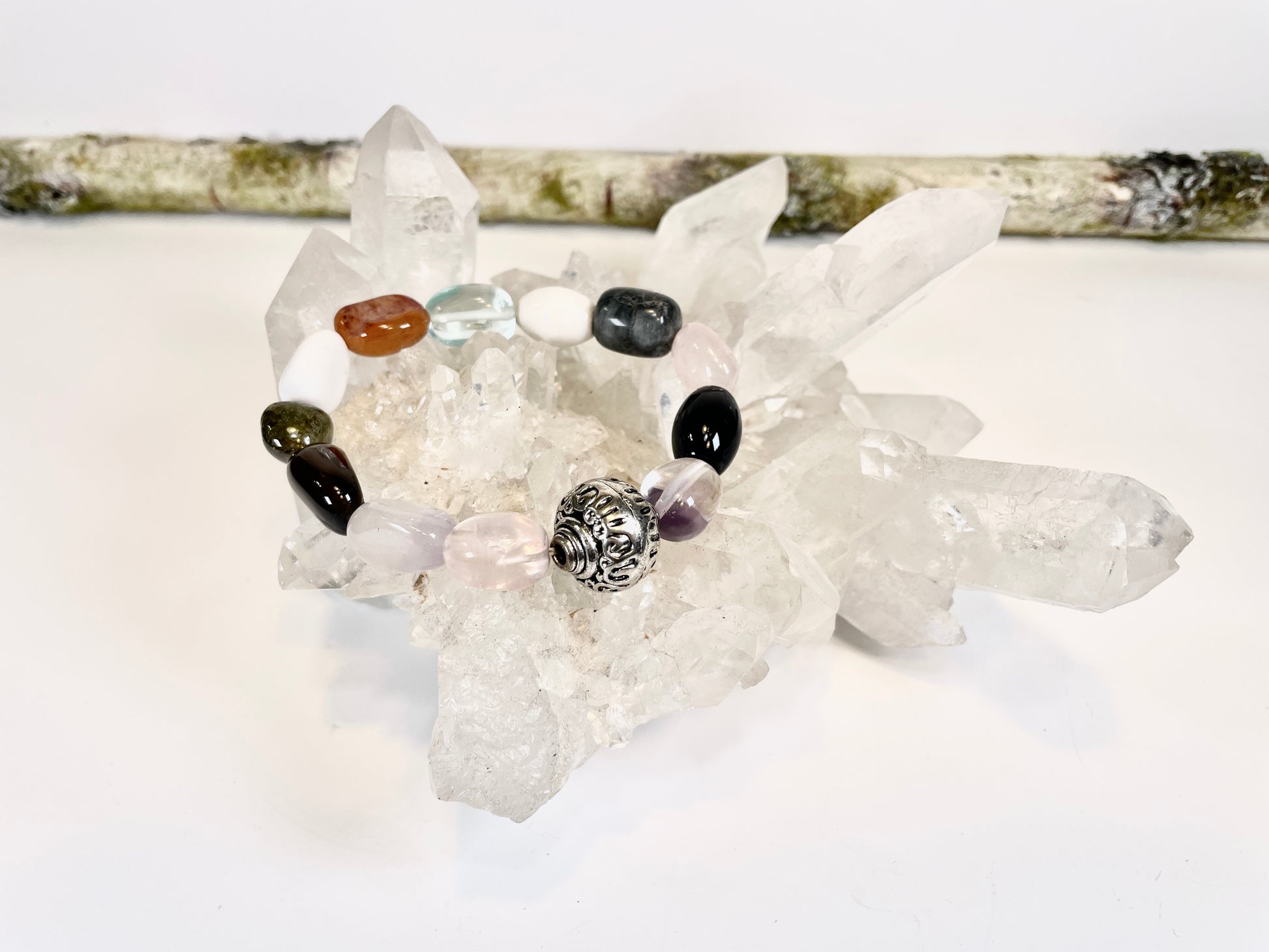 "Indulge in the ethereal beauty of our Handmade Crystal Bracelet, a mesmerizing symphony of natural stones expertly crafted to adorn your wrist. Each crystal bead radiates a unique energy, offering a touch of nature's enchantment to elevate your style. Meticulously handcrafted with precision, this bracelet is a celebration of the inherent beauty found in earth's treasures. Whether you seek healing energy or simply wish to add a touch of glamour to your ensemble, our crystal bracelet is the perfect choice. Shop now and embrace the allure of handmade elegance."