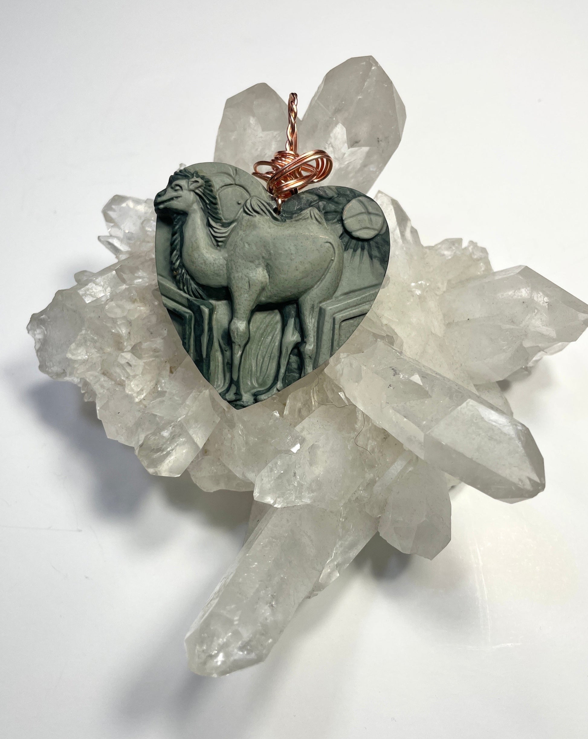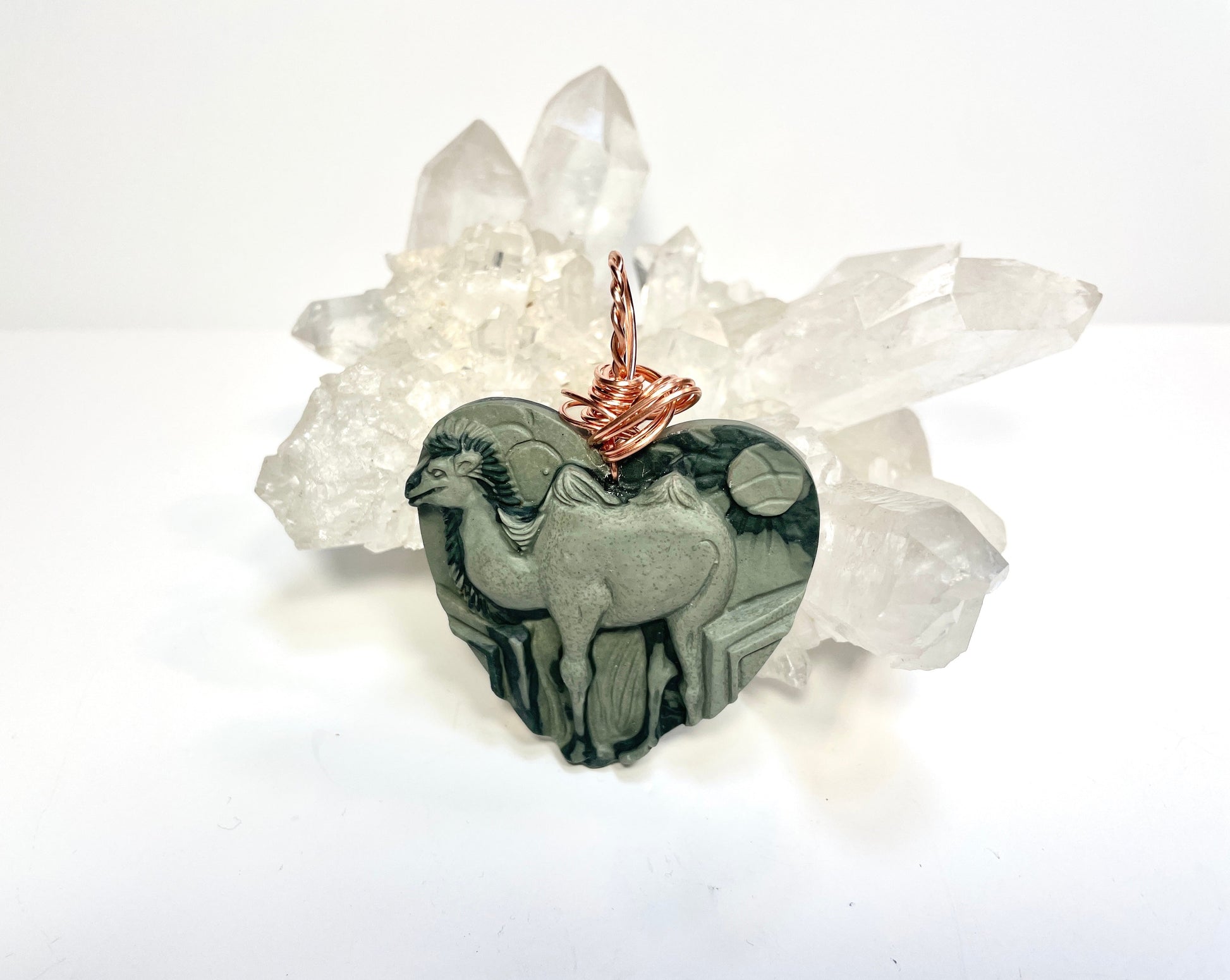 Unveil pendants the charm of our heart-carved Camel Jasper Pendant, a symbol of love and wanderlust, intricately adorned in a copper embrace. The copper wire wrap adds a touch of rustic elegance, enhancing the pendant's organic appeal.