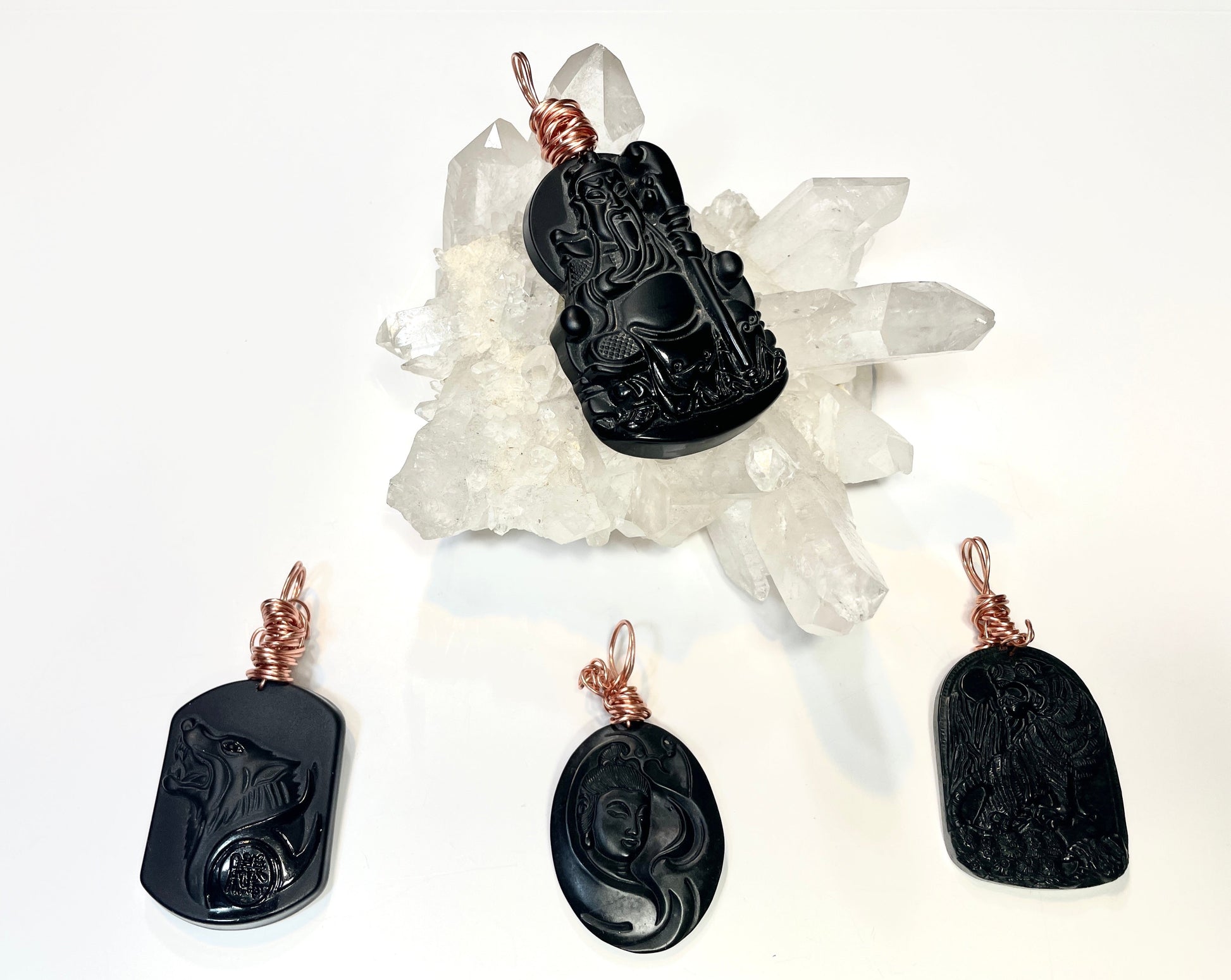 Introducing our pendant Copper Wired Wrapped Obsidian Asian Princess pendant — a captivating blend of culture and craftsmanship. Immerse yourself in the allure of this handcrafted piece, featuring a stunning Obsidian centerpiece intricately wrapped in copper wire.