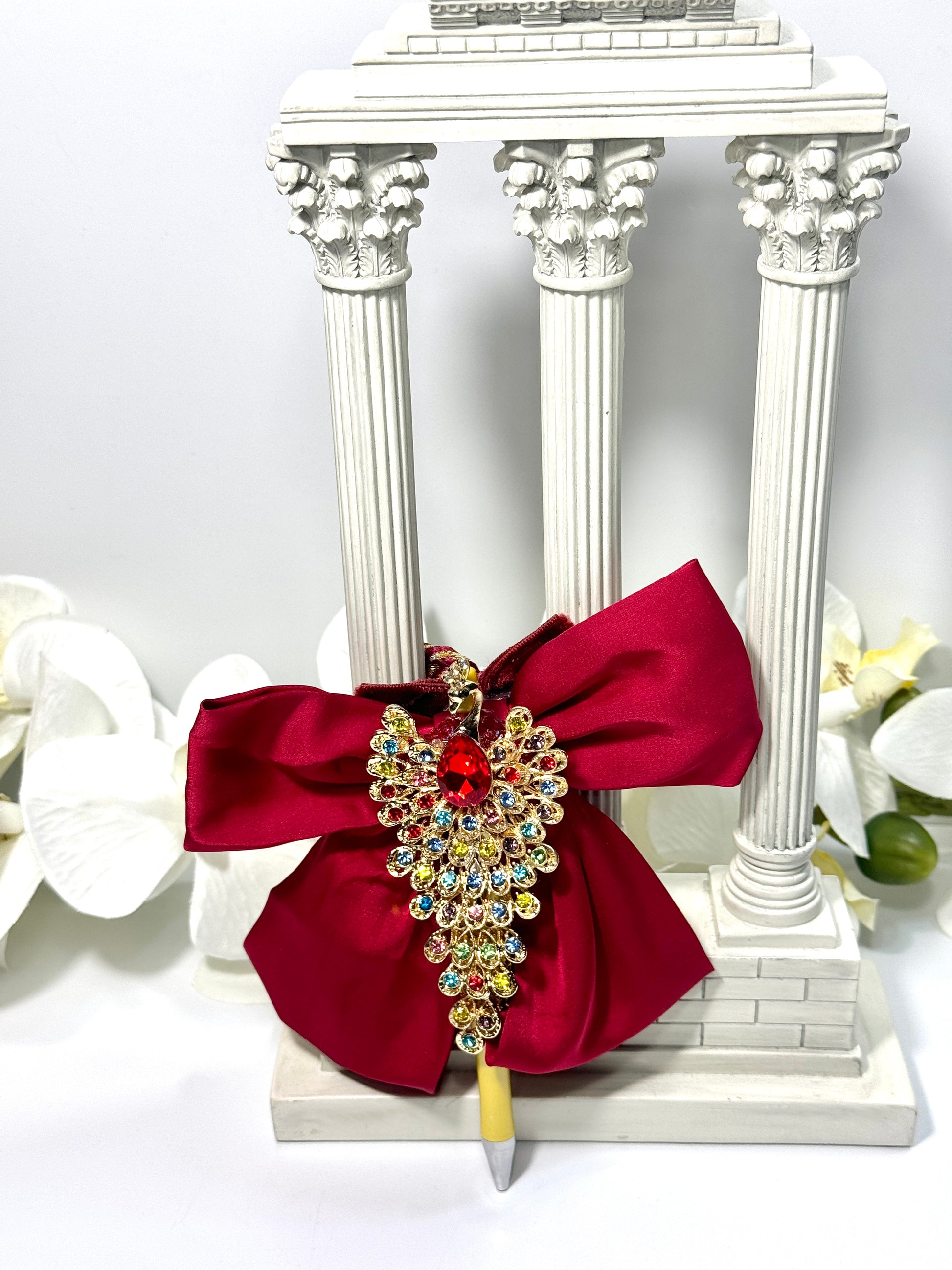 Elevate your writing with our handmade pens, featuring a unique pink, multicolored peacock design, embellished with sparkling rhinestones. These pens combine artistry and function, making them a stunning addition to any desk or collection.