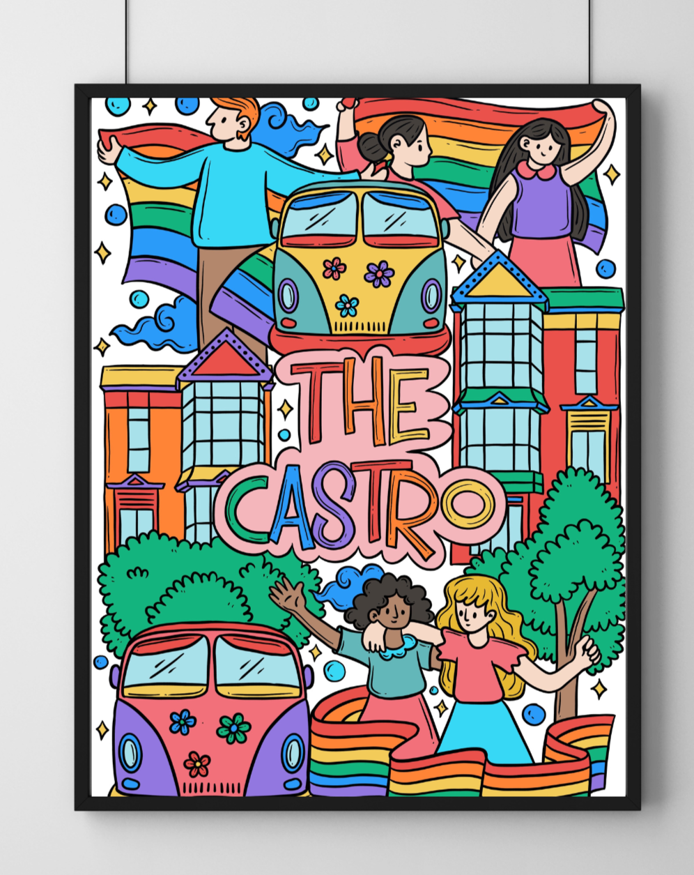 "Step into the vibrant world of The Castro, where my artistic designs capture the essence of this iconic San Francisco neighborhood. My creations celebrate the rich history, diversity, and cultural significance of The Castro. From colorful street scenes to architectural marvels, each piece reflects the heart and soul of this thriving community. Immerse yourself in a visual journey through this historic district, where art and culture converge."